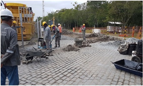 Serviços de conservação de pavimentação em paralelepípedo e asfalto nas bases de Imbetiba e Parque de Tubos, em Macaé/RJ.